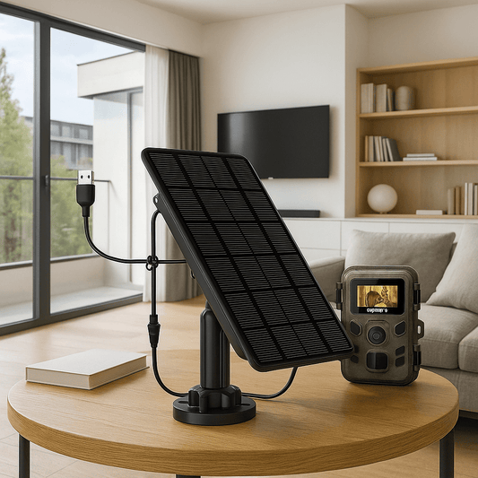 Kit de Alimentación Solar con Batería 5000mAh para Cámaras de Caza (6V/12V/USB-C)
