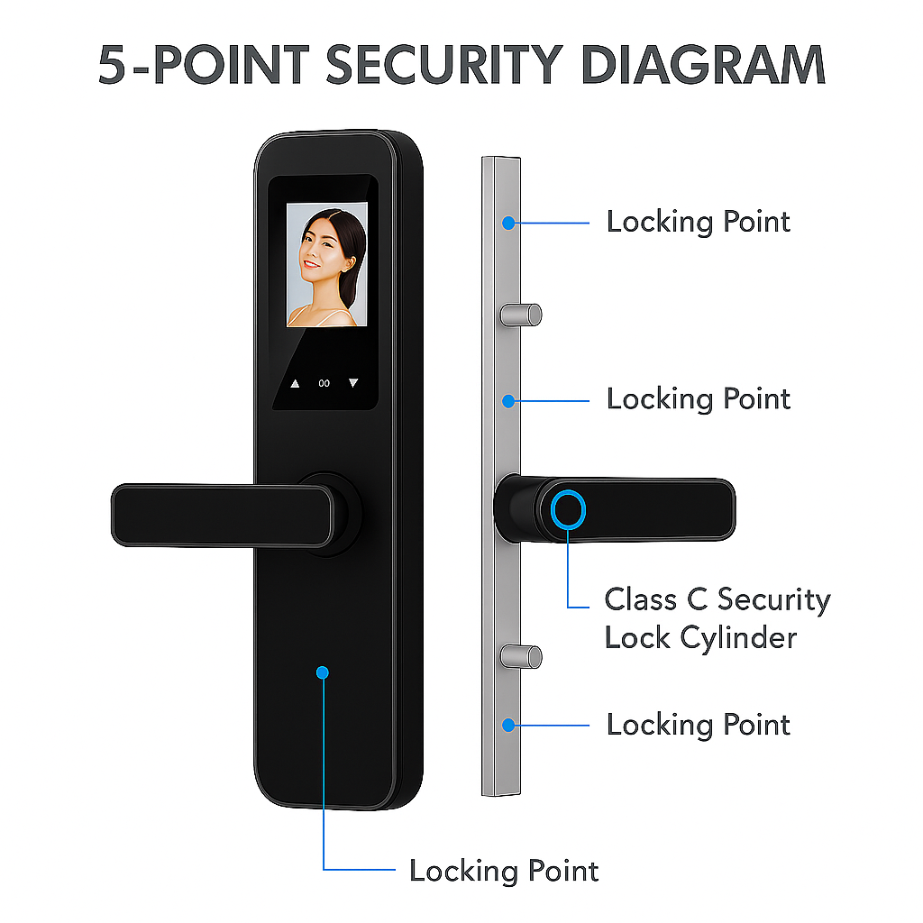 Esta cerradura inteligente de última generación combina tres métodos de acceso en un solo dispositivo: reconocimiento de huella dactilar de precisión militar, código PIN personalizable y acceso tradicional con llave de emergencia. El sensor biométrico de 360° con tecnología óptica avanzada reconoce hasta 200 huellas dactilares diferentes en menos de 0.3 segundos, incluso con dedos húmedos o ligeramente sucios.