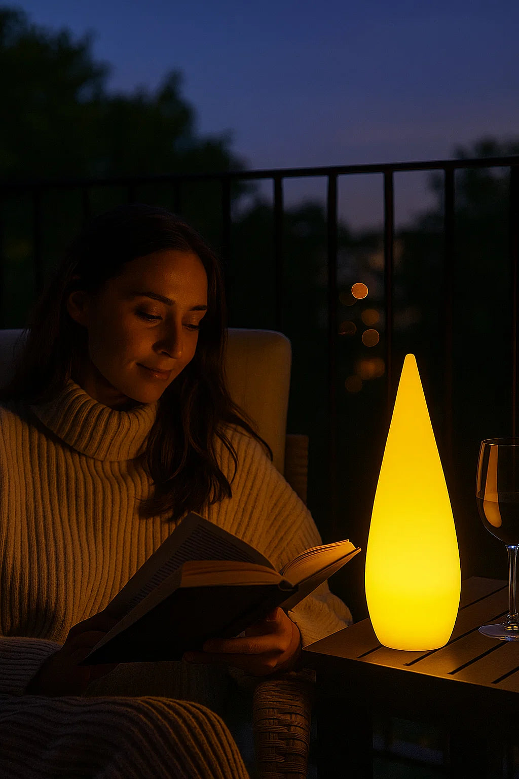 💧 Diseño Elegante y Escultural: Su sofisticada forma de gota de agua sirve como una pieza decorativa impactante durante el día y una fuente de luz mágica por la noche, añadiendo un toque de lujo a tu hogar.