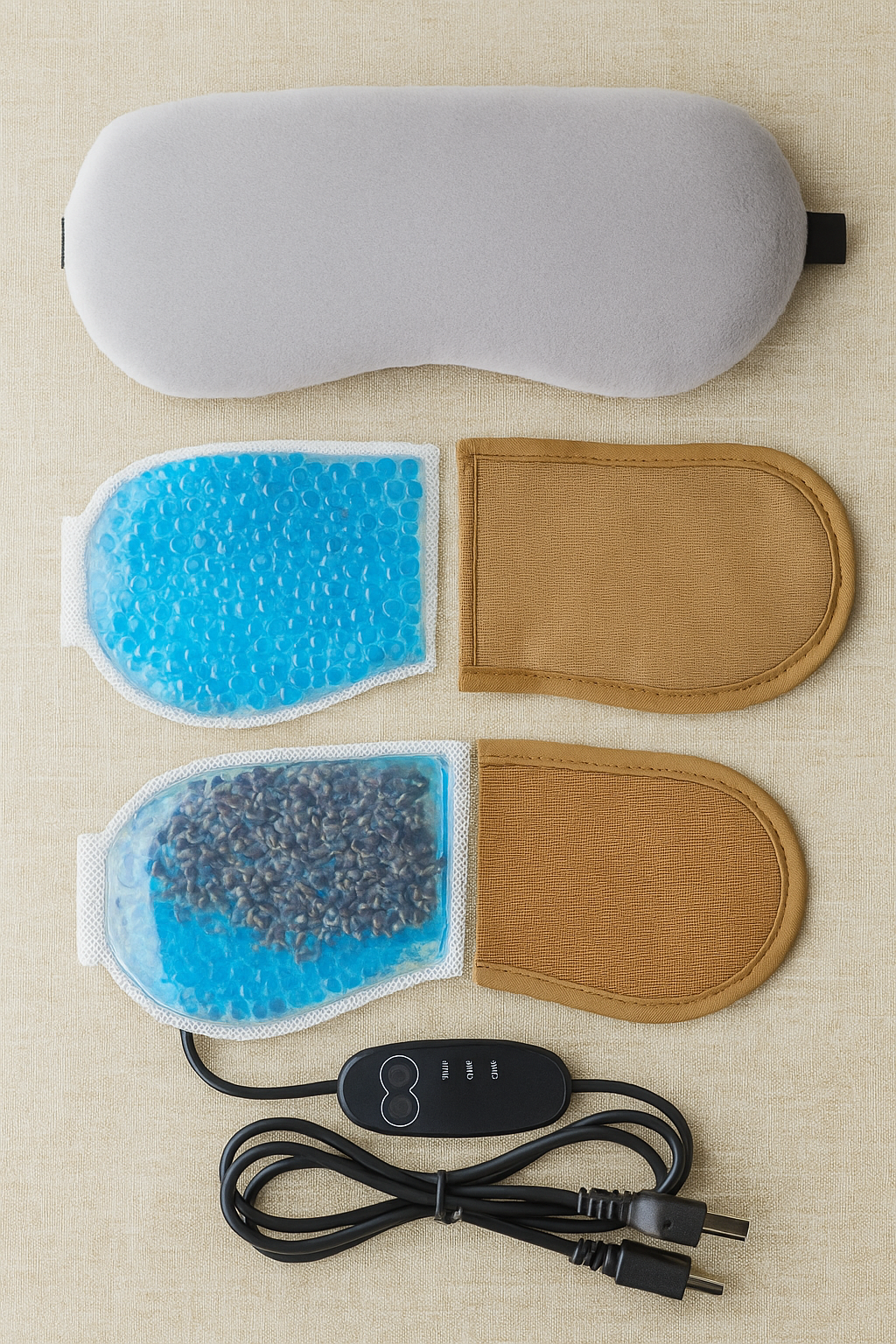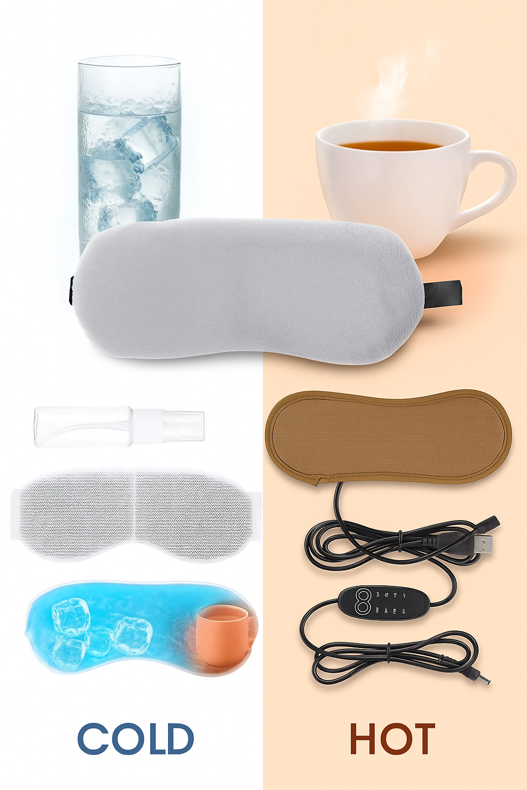 ❄️ Terapia de Frío Descongestionante Enfría el inserto en el refrigerador para una compresa fría y refrescante. Esta terapia es ideal para reducir la hinchazón de los ojos por la mañana, disminuir la apariencia de ojeras, y aliviar los dolores de cabeza o la fatiga visual causada por el uso prolongado de pantallas.