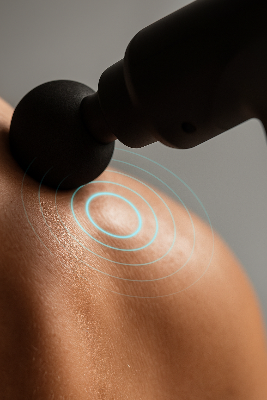 Masajear: Desliza la pistola suavemente sobre el músculo durante 1-2 minutos por zona. ¡Siente cómo la tensión desaparece al instante!
