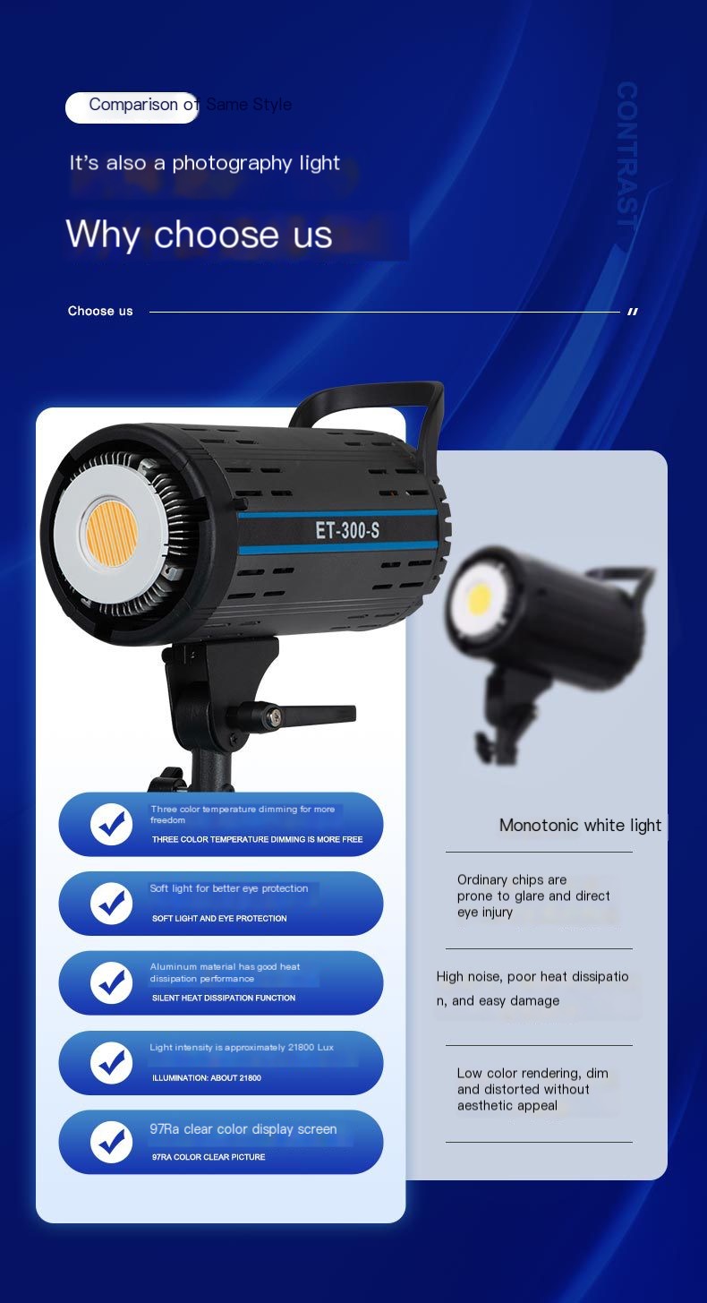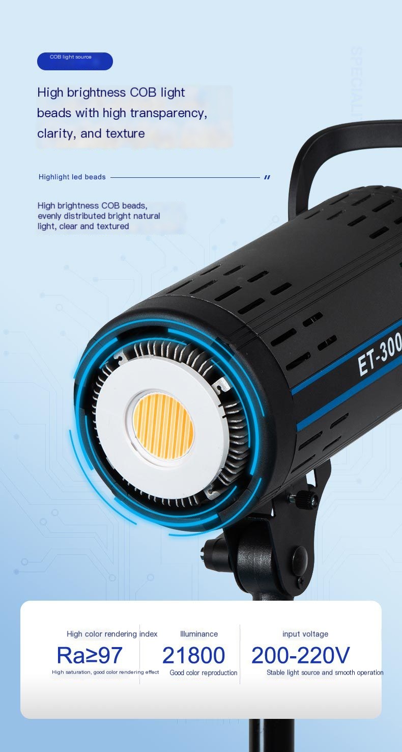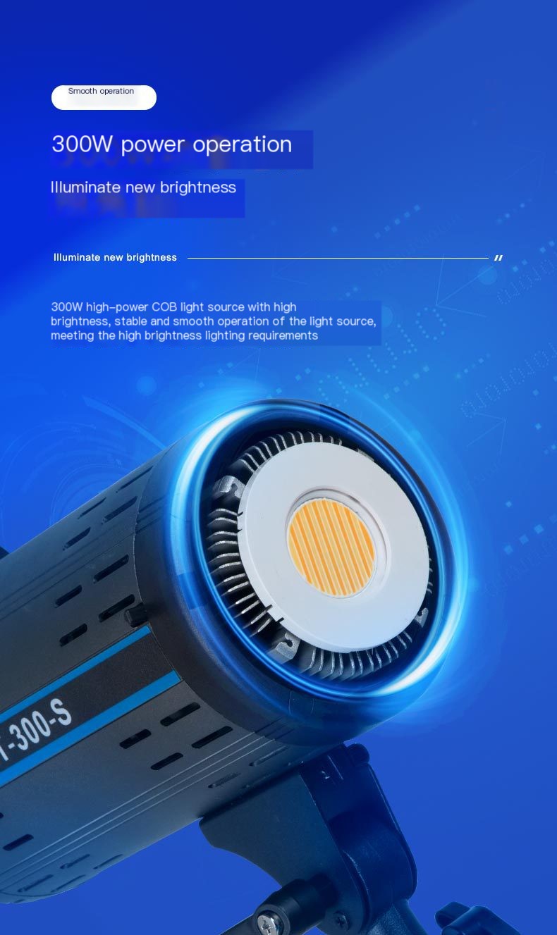 • Potencia de Nivel Profesional (300W): Con un núcleo COB de 220W de alta eficiencia, esta lámpara ofrece una iluminación brillante, potente y constante que puede iluminar escenas completas o sujetos a una distancia de 5 a 10 metros, eliminando sombras indeseadas.