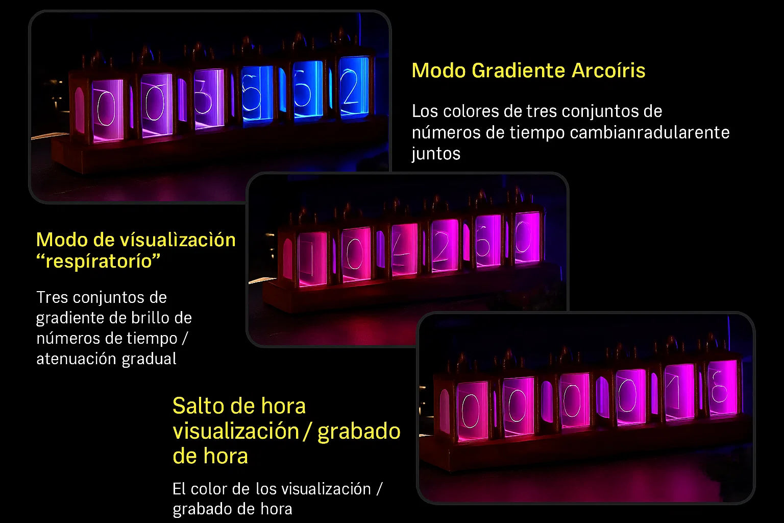Introducing the RGB pseudo-nixie tube clock, a stunning blend of retro aesthetics and modern technology. Perfectly crafted from high-quality ABS and acrylic, this clock is not just a timepiece but a captivating decorative item for any desk or shelf. Its unique design, featuring a black walnut wood grain finish, elevates the ambiance of any room, making it an ideal gift for teenagers aged 7-14 years.