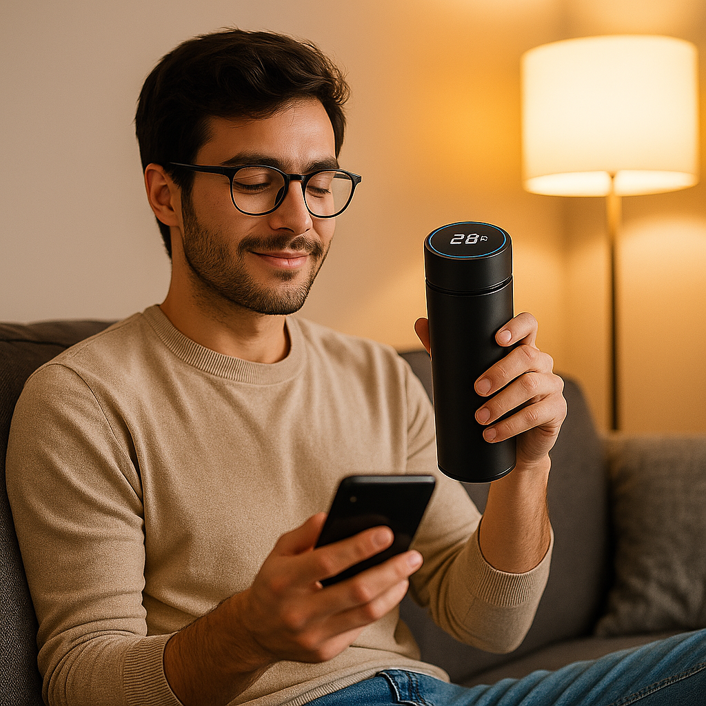 Porque es más que una simple botella; es un accesorio inteligente que mejora tu vida diaria. Combina a la perfección tecnología, estilo y funcionalidad, asegurando que nunca más te lleves una sorpresa desagradable con la temperatura de tu bebida. Es práctico, elegante y el regalo perfecto y original para cualquier persona que aprecie la innovación y la calidad.