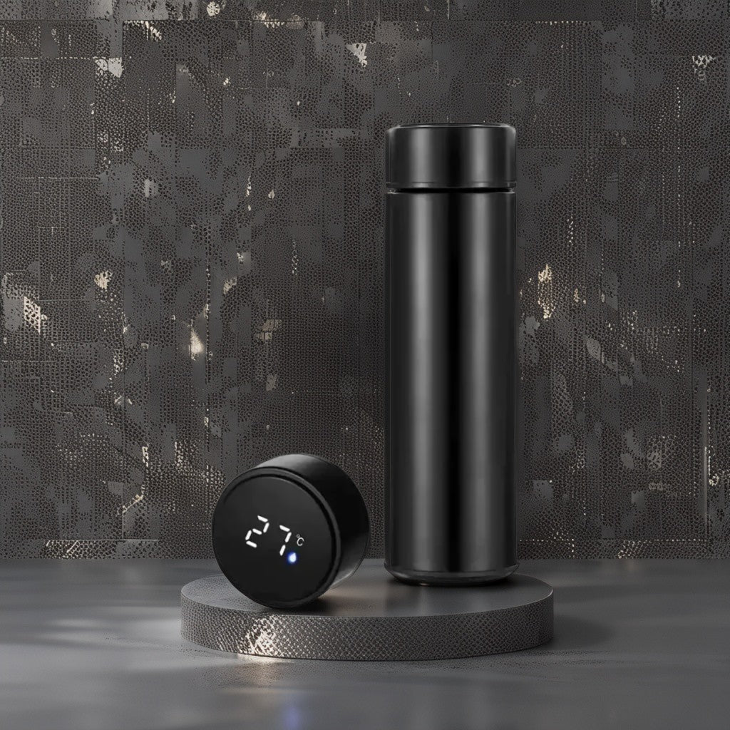 Es la evolución del termo tradicional. Este vaso térmico inteligente combina un diseño elegante y materiales de alta calidad con tecnología innovadora para mejorar tu experiencia de hidratación. Su característica principal es una pantalla LED táctil en la tapa que te muestra la temperatura exacta del líquido en su interior con un solo toque. Di adiós a las bebidas demasiado calientes o frías y disfruta siempre de tu café, té o agua a la temperatura ideal.